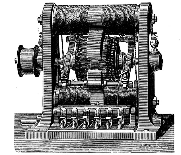 Electric illuminator. Electromagnetic apparatus according to Gramme. Lumière électrique. Machine magnéto-électriques de Gramme Electric illuminator. Electromagnetic apparatus according to Gramme.